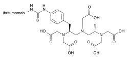 Ibritumomab tiuxetan (pronounced /ɪbrɪˈtuːmoʊmæb taɪˈʌksɛtæn/[2]), sold under the trade name Zevalin, is a monoclonal antibody radioimmunotherapy treatment for non-Hodgkin's lymphoma. The drug uses the monoclonal mouse IgG1 antibody ibritumomab in conjunction with the chelator tiuxetan, to which a radioactive isotope (either yttrium-90 or indium-111) is added. Tiuxetan is a modified version of DTPA whose carbon backbone contains an isothiocyanatobenzyl and a methyl group.[3][4]