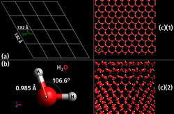 Ice from a theorized superionic water may possess two crystalline structures. At pressures in excess of 500,000 bars (7,300,000 psi) such superionic ice would take on a body-centered cubic structure. However, at pressures in excess of 1,000,000 bars (15,000,000 psi) the structure may shift to a more stable face-centered cubic lattice. It is speculated that superionic ice could compose the interior of ice giants such as Uranus and Neptune.[35]