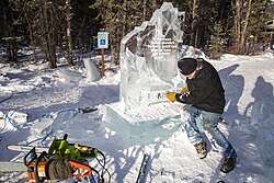 Ice is still harvested for ice and snow sculpture events. For example, a swing saw is used to get ice for the Harbin International Ice and Snow Sculpture Festival each year from the frozen surface of the Songhua River.[112]