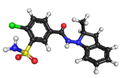 Below: 3D representation of an indapamide molecule | |