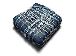 Most indigo dye produced today is synthetic, constituting around 80,000 tonnes each year, as of 2023.[2] It is most commonly associated with the production of denim cloth and blue jeans, where its properties allow for effects such as stone washing and acid washing to be applied quickly.