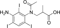 Iocetamic acid (trade name Cholebrin) is a pharmaceutical drug taken by mouth and used as an iodinated contrast medium for X-ray imaging of the gall bladder.[1]
