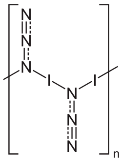 Iodine azide (IN3) is an explosive inorganic compound, which in ordinary conditions is a yellow solid.[1] Formally, it is an inter-pseudohalogen.