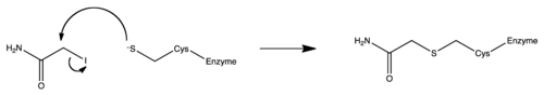 - ^ Smythe CV (1936). "The reactions of Iodoacetate and of Iodoacetamide with various Sulfhydryl groups, with Urease, and with Yeast preparations". J. Biol. Chem. 114 (3): 601–12. doi:10.1016/S0021-9258(18)74789-3.