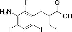 - ^ Renko K, Hoefig CS, Hiller F, Schomburg L, Köhrle J (May 2012). "Identification of iopanoic acid as substrate of type 1 deiodinase by a novel nonradioactive iodide-release assay". Endocrinology. 153 (5): 2506–13. doi:10.1210/en.2011-1863. PMID 22434082.