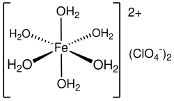 Iron(II) perchlorate is the inorganic compound with the formula Fe(ClO4)2·6H2O. A green, water-soluble solid, it is produced by the reaction of iron metal with dilute perchloric acid followed by evaporation of the solution:[3]