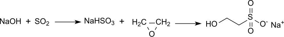 However the most common route is the reaction of ethylene oxide with aqueous sodium bisulfite, which produces the sodium salt (sodium isethionate):