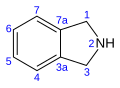 Isoindoline is a heterocyclic organic compound with the molecular formula C8H9N.[2] The parent compound has a bicyclic structure, consisting of a six-membered benzene ring fused to a five-membered nitrogen-containing ring. The compound's structure is similar to indoline except that the nitrogen atom is in the 2 position instead of the 1 position of the five-membered ring. Isoindoline itself is not commonly encountered, but several derivatives are found in nature and some synthetic derivatives are commercially valuable drugs, e.g. lenalidomide and pazinaclone.[3]