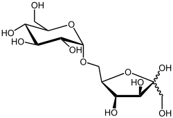 Isomaltulose (trade name Palatinose, chemical name 6-O-α-D-glucopyranosyl-D-fructose) is a disaccharide carbohydrate composed of glucose and fructose. It is naturally present in honey[1] and sugarcane extracts[2] and is also produced industrially from table sugar (sucrose) and used as a sugar alternative.