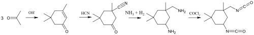 Isophorone diisocyanate is produced by phosgenation of isophorone diamine in five-step reaction:[2]