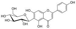 Isovitexin (homovitexin or saponaretin) is a flavonoid,[1] namely the apigenin-6-C-glucoside. In this case, the prefix 'iso' does not imply an isoflavonoid (the position of the B-ring on the C-ring), but the position of the glucoside on the flavone, in comparison to vitexin.