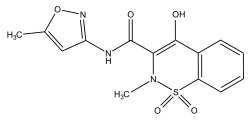 Isoxicam is a nonsteroidal anti-inflammatory drug (NSAID) that was taken or applied to reduce inflammation and as an analgesic reducing pain in certain conditions. The drug was introduced in 1983 by the Warner-Lambert Company. Isoxicam is a chemical analog of piroxicam (Feldene) which has a pyridine ring in lieu of an isoxazole ring. In 1985 isoxicam was withdrawn from the French market, due to adverse effects, namely toxic epidermal necrolysis resulting in death. Although these serious side effects were observed only in France, the drug was withdrawn worldwide.[1][2]