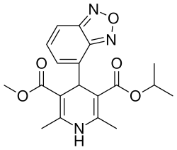 Isradipine (tradenames DynaCirc, Prescal) is a calcium channel blocker of the dihydropyridine class. It is usually prescribed for the treatment of high blood pressure in order to reduce the risk of stroke and heart attack.