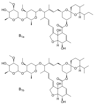 Fermentation of Streptomyces avermitilis yields eight closely related avermectin homologues, of which B1a and B1b form the bulk of the products isolated. In a separate chemical step, the mixture is hydrogenated to give ivermectin, which is an approximately 80:20 mixture of the two 22,23-dihydroavermectin compounds.[75][76][7]