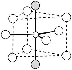 Bonding is ionic with lanthanum highly coordinated. The cation sits at the center of a trigonal prism. Nine fluorine atoms are close: three at the bottom corners of the trigonal prism, three in the faces of the trigonal prism, and three at top corners of the trigonal prism. There are also two fluorides a little further away above and below the prism. The cation can be considered 9-coordinate or 11-coordinate.[4] At 300 K, the structure allows the formation of Schottky defects with an activation energy of 0.07 eV, and free flow of fluoride ions with an activation energy of 0.45 eV, making the crystal unusually electrically conductive.[5][6]