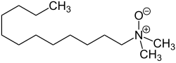 Lauryldimethylamine oxide (LDAO), also known as dodecyldimethylamine oxide (DDAO), is an amine oxide–based zwitterionic surfactant, with a C12 (dodecyl) alkyl tail. It is one of the most frequently-used surfactants of this type.[4] Like other amine oxide–based surfactants it is antimicrobial, being effective against common bacteria such as S. aureus and E. coli,[1] however, it is also non-denaturing and can thus be used for protein purification.