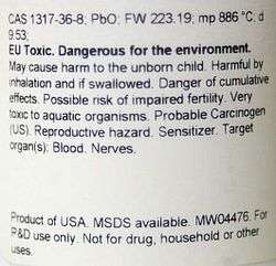 - ^ "Lead(II) oxide". International Occupational Safety and Health Information Centre. Archived from the original on 2011-12-15. Retrieved 2009-06-06.