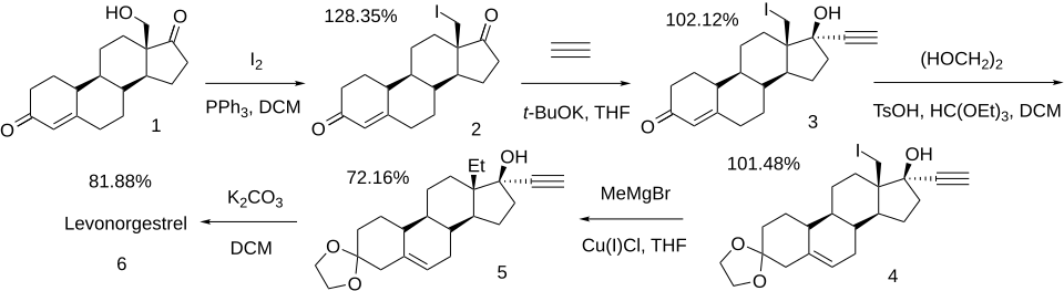 - ^ FerriñTo, Sergio; López-Tapia, Francisco; Salgado-Zamora, Hećtor (1996). "An Improved Alternative Norgestrel Preparation". Synthetic Communications. 26 (7): 1461–1465. doi:10.1080/00397919608003509.