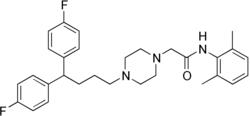 - ^ a b Schaper WK, Xhoneux R, Jageneau AH, Janssen PA (May 1966). "The cardiovascular pharmacology of lidoflazine, a long-acting coronary vasodilator". The Journal of Pharmacology and Experimental Therapeutics. 152 (2): 265–274. doi:10.1016/S0022-3565(25)27319-0. PMID 5944369.