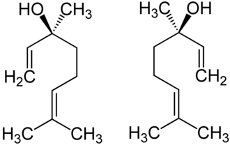 (S)-(+)-linalool (left) and (R)-(–)-linalool (right)