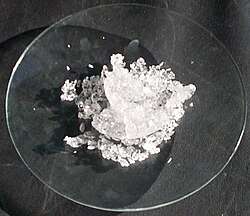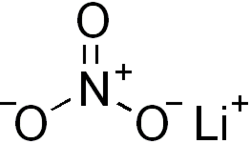 Lithium nitrate is an inorganic compound with the formula LiNO3. It is the lithium salt of nitric acid (an alkali metal nitrate). The salt is deliquescent, absorbing water to form the hydrated form, lithium nitrate trihydrate. Its eutectics are of interest for heat transfer fluids.[2]