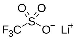 Lithium triflate (lithium triflouromethanesulfonate or LiOTf) is a salt with the chemical formula LiCF3SO3. It is composed of the lithium cation (Li+) and triflate anion (CF3SO3−; TfO−). It is very hygroscopic. The salt is used in lithium-ion battery production.[1]