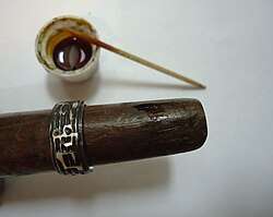 Liver of sulfur is a loosely defined mixture of potassium sulfide, potassium polysulfide, potassium thiosulfate, and likely potassium bisulfide. Synonyms include hepar sulfuris, sulfurated potash and sulfurated potassa. There are two distinct varieties: "potassic liver of sulfur" and "ammoniacal liver of sulfur".[1] It is traditionally used as an oxidising agent in metalwork.
