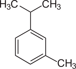 m-Cymene is an organic compound classified as an aromatic hydrocarbon. Its structure consists of a benzene ring meta-substituted with a methyl group and an isopropyl group. It is a flammable colorless liquid which is nearly insoluble in water but soluble in organic solvents.