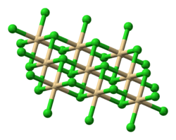 MgCl2 crystallizes in the cadmium chloride CdCl2 motif, therefore it loses water upon heating: n = 12 (−16.4 °C), 8 (−3.4 °C), 6 (116.7 °C), 4 (181 °C), 2 (about 300 °C).[4] In the hexahydrate, the Mg2+ is also octahedral, being coordinated to six water ligands.[5] The octahydrate and the dodecahydrate can be crystallized from water below 298K. As verified by X-ray crystallography, these "higher" hydrates also feature [Mg(H2O)6]2+ ions.[6] A decahydrate has also been crystallized.[7]