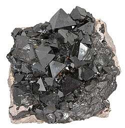 Magnetite crystals with a cubic habit are rare but have been found at Balmat, St. Lawrence County, New York,[47][48] and at Långban, Sweden.[49] This habit may be a result of crystallization in the presence of cations such as zinc.[50]