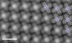![]() STM image of a manganese(II) phthalocyanine monolayer on Pb, scale bar is 2 nm.[1]