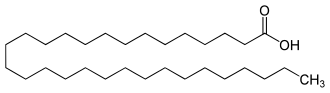 Melissic acid (or triacontanoic acid) is the organic compound with the formula CH3(CH2)28CO2H. It is classified as a very long chain fatty acid, a subset of saturated fatty acids. It is a white solid that is soluble in organic solvents. Melissic acid gets its name from the Greek word melissa meaning bee, since it was found in beeswax.