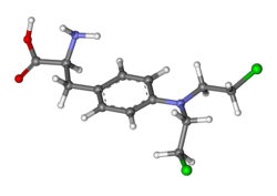 - ^ Larionov LF, Shkodinskaja EN, Troosheikina VI, Khokhlov AS, Vasina OS, Novikova MA (July 1955). "Studies on the anti-tumour activity of p-di-(2-chloroethyl) aminophenylalanine (sarcolysine)". Lancet. 269 (6882): 169–171. doi:10.1016/S0140-6736(55)92736-7. PMID 13243678.