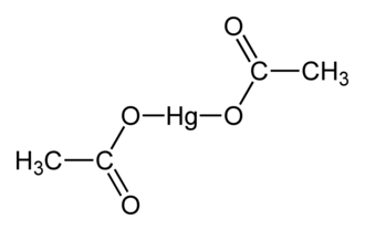 Mercury(II) acetate, also known as mercuric acetate is a chemical compound, the mercury(II) salt of acetic acid, with the formula (CH3COO)2Hg. Commonly abbreviated Hg(OAc)2, this compound is employed as a reagent to generate organomercury compounds from unsaturated organic precursors. It is a white, water-soluble solid, but some samples can appear yellowish with time owing to decomposition.