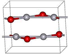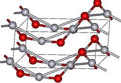 Under atmospheric pressure mercuric oxide has two crystalline forms: one is called montroydite (orthorhombic, 2/m 2/m 2/m, Pnma), and the second is analogous to the sulfide mineral cinnabar (hexagonal, hP6, P3221); both are characterized by Hg-O chains.[10] At pressures above 10 GPa both structures convert to a tetragonal form.[1]