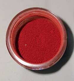 When α-HgS is used as a red pigment, it is known as cinnabar. The tendency of cinnabar to darken has been ascribed to conversion from red α-HgS to black β-HgS. However β-HgS was not detected at excavations in Pompeii, where originally red walls darkened, and was attributed to the formation of Hg-Cl compounds (e.g., corderoite, calomel, and terlinguaite) and calcium sulfate, gypsum.[7]