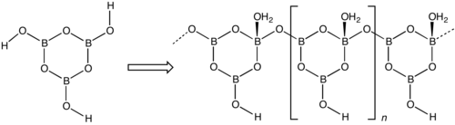 - ^ Siavash Aghili, Masoud Panjepour, and Mahmood Meratian (2018): "Kinetic analysis of formation of boron trioxide from thermal decomposition of boric acid under non-isothermal conditions." Journal of Thermal Analysis and Calorimetry, volume 131, pages 2443–2455. doi:10.1007/s10973-017-6740-3
