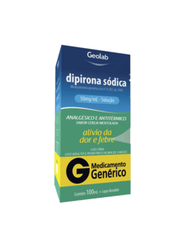 Oral solution bottle of dypirone in its packaging (Portuguese lettering)