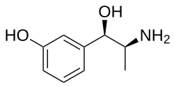 Metaraminol, also known as (1R,2S)-3,β-dihydroxy-α-methylphenethylamine or as (1R,2S)-3,β-dihydroxyamphetamine, is a substituted phenethylamine and amphetamine derivative.[3][4] It is the (1R,2S)-enantiomer of meta-hydroxynorephedrine (3,β-dihydroxyamphetamine).[3][4] The drug is closely related to phenylpropanolamine ((1RS,2SR)-β-hydroxyamphetamine; norephedrine), ephedrine ((1R,2S)-β-hydroxy-N-methylamphetamine), para-hydroxynorephedrine (4,β-dihydroxyamphetamine), and oxilofrine (4,β-dihydroxy-N-methylamphetamine).[3][4]