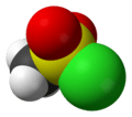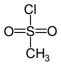 Methanesulfonyl chloride (mesyl chloride) is an organosulfur compound with the formula CH3SO2Cl. Using the organic pseudoelement symbol Ms for the methanesulfonyl (or mesyl) group CH3SO2–, it is frequently abbreviated MsCl in reaction schemes or equations. It is a colourless liquid that dissolves in polar organic solvents but is reactive toward water, alcohols, and many amines. The simplest organic sulfonyl chloride, it is used to make methanesulfonates and to generate the elusive molecule sulfene (methylenedioxosulfur(VI)).[7]