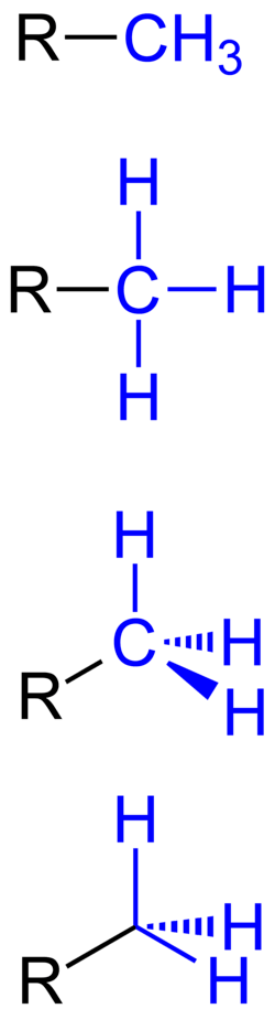 Different ways of representing a methyl group (highlighted in blue)