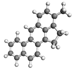Methylcholanthrene is a highly carcinogenic polycyclic aromatic hydrocarbon produced by burning organic compounds at very high temperatures. Methylcholanthrene is also known as 3-methylcholanthrene, 20-methylcholanthrene or the IUPAC name 3-methyl-1,2-dyhydrobenzo[j]aceanthrylene. The short notation often used is 3-MC or MCA. This compound forms pale yellow solid crystals when crystallized from benzene and ether.[1] It has a melting point around 180 °C and its boiling point is around 280 °C at a pressure of 80 mmHg.[2] Methylcholanthrene is used in laboratory studies of chemical carcinogenesis. It is an alkylated derivative of benz[a]anthracene and has a similar UV spectrum. The most common isomer is 3-methylcholanthrene, although the methyl group can occur in other places.