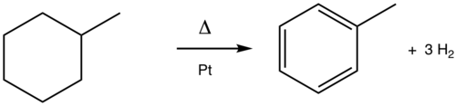 The conversion of methylcyclohexane to toluene is a classic aromatization reaction. This platinum (Pt)-catalyzed process is practiced on scale in the production of gasoline from petroleum.[13]