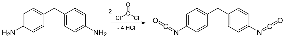 - ^ Boros, R. Zsanett; Koós, Tamás; Wafaa, Cheikh; Nehéz, Károly; Farkas, László; Viskolcz, Béla; Szőri, Milán (2018-08-16). "A theoretical study on the phosgenation of methylene diphenyl diamine (MDA)". Chemical Physics Letters. 706: 568–576. Bibcode:2018CPL...706..568B. doi:10.1016/j.cplett.2018.06.024. ISSN 0009-2614. S2CID 102682388.