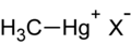Methylmercury is an organometallic cation with the formula [CH3Hg]+. It is the simplest organomercury compound. Methylmercury is extremely toxic, and its derivatives are the major source of organic mercury for humans. It is a bioaccumulative environmental toxicant with a 50-day elimination half-life in human blood.[1] Methylmercury salts along with dimethylmercury are the causative agents of the infamous Minamata disease.