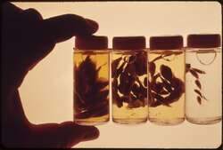 Whole-lake ecosystem experiments at IISD-ELA in Ontario, Canada, showed that mercury falling directly on a lake had the fastest impacts on aquatic ecosystems as opposed to mercury falling on the surrounding land.[21] This inorganic mercury is converted to methylmercury by bacteria. Different stable isotopes of mercury were added to lakes, wetlands, and uplands, simulating rain, and then mercury concentrations in fish were analyzed to find their source.[22] The mercury applied to lakes was found in young-of-the-year yellow perch within two months, whereas the mercury applied to wetlands and uplands had a slower but longer influx.[21][22]