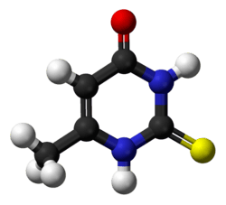 Methylthiouracil is an organosulfur compound that is used antithyroid preparation. It is a thioamide, closely related to propylthiouracil. Methylthiouracil is not used clinically in the United States, it has a similar mechanism of action and side effect to that of propylthiouricil. The drug acts to decrease the formation of stored thyroid hormone, as thyroglobulin in the thyroid gland. The clinical effects of the drug to treat the hyperthyroid state can have a lag period of up to two weeks, depending on the stores of thyroglobulin and other factors.