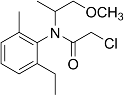 Metolachlor is an organic compound that is widely used as an herbicide. It is a derivative of aniline and is a member of the chloroacetanilide family of herbicides. It is highly effective toward grasses.