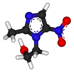 - ^ Lamp KC, Freeman CD, Klutman NE, Lacy MK (May 1999). "Pharmacokinetics and pharmacodynamics of the nitroimidazole antimicrobials". Clinical Pharmacokinetics. 36 (5): 353–373. doi:10.2165/00003088-199936050-00004. PMID 10384859. S2CID 37891515.