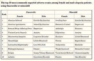 - ^ Wu M, Yu Q, Li Q (December 2016). "Differences in reproductive toxicology between alopecia drugs: an analysis on adverse events among female and male cases". Oncotarget. 7 (50): 82074–82084. doi:10.18632/oncotarget.12617. PMC 5347675. PMID 27738338.